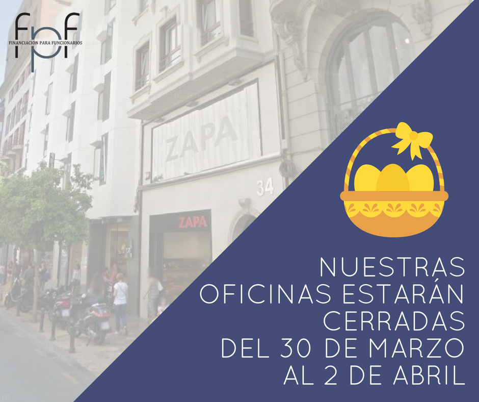 Os informamos de que estos últimos días de Semana Santa, nuestras oficinas financieras en Valencia permanecerán cerradas por vacaciones.